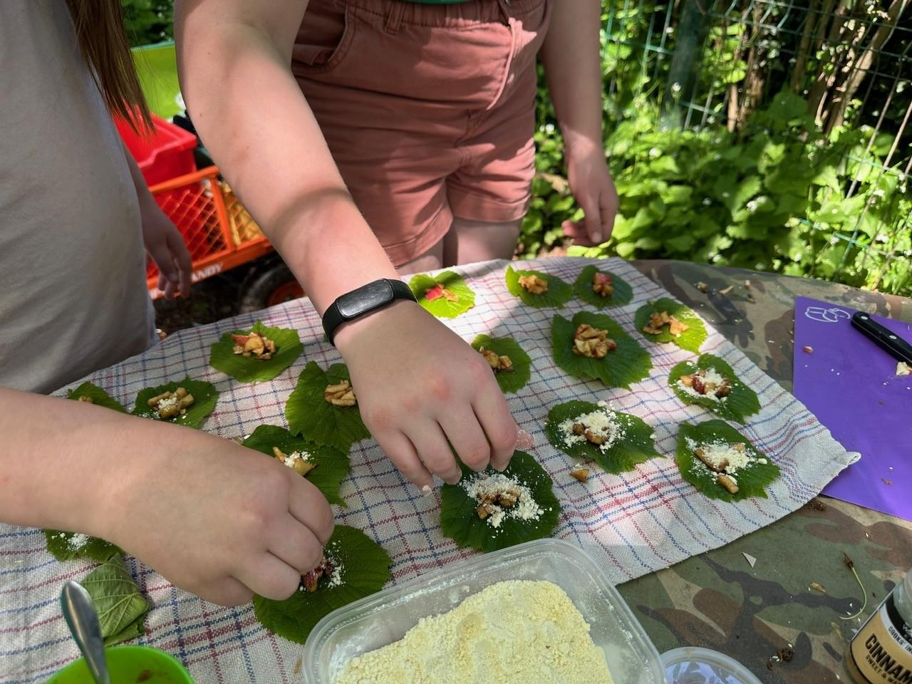 Orienteering and apple crumble hazel leaf parcels