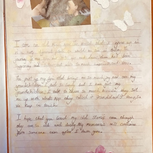 We wrote autobiographies as if we were the old man in the film. We chose sections of our autobiographies to read aloud and made them into films using IMovie.