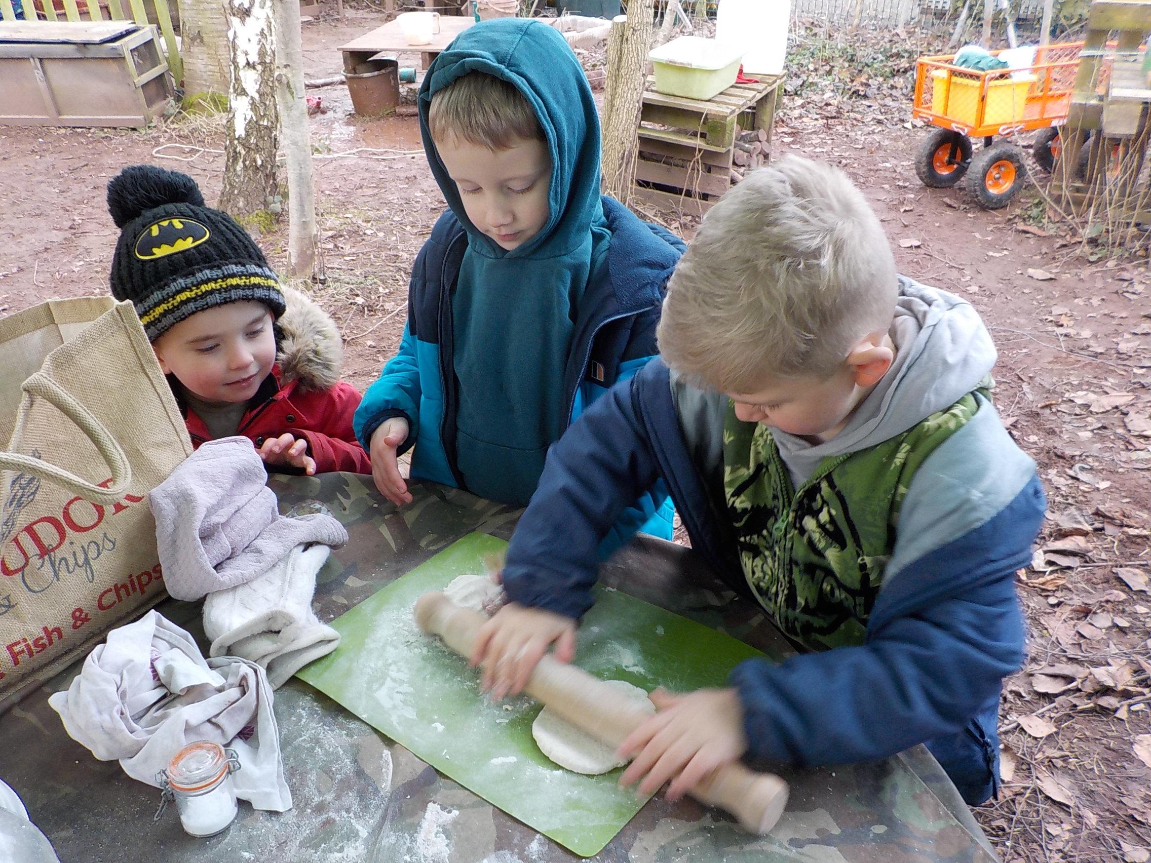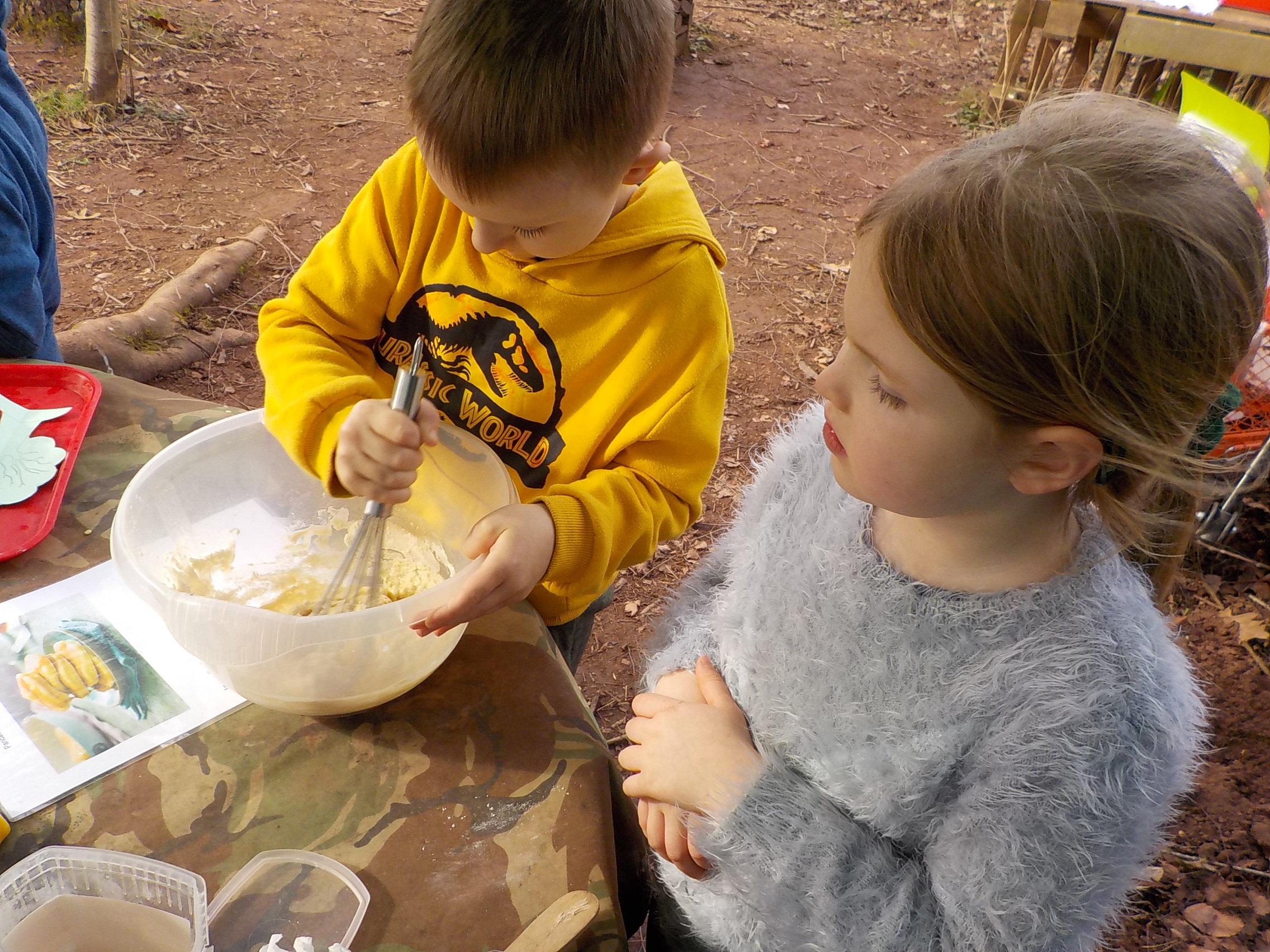 Making pancakes and seasons finger painting