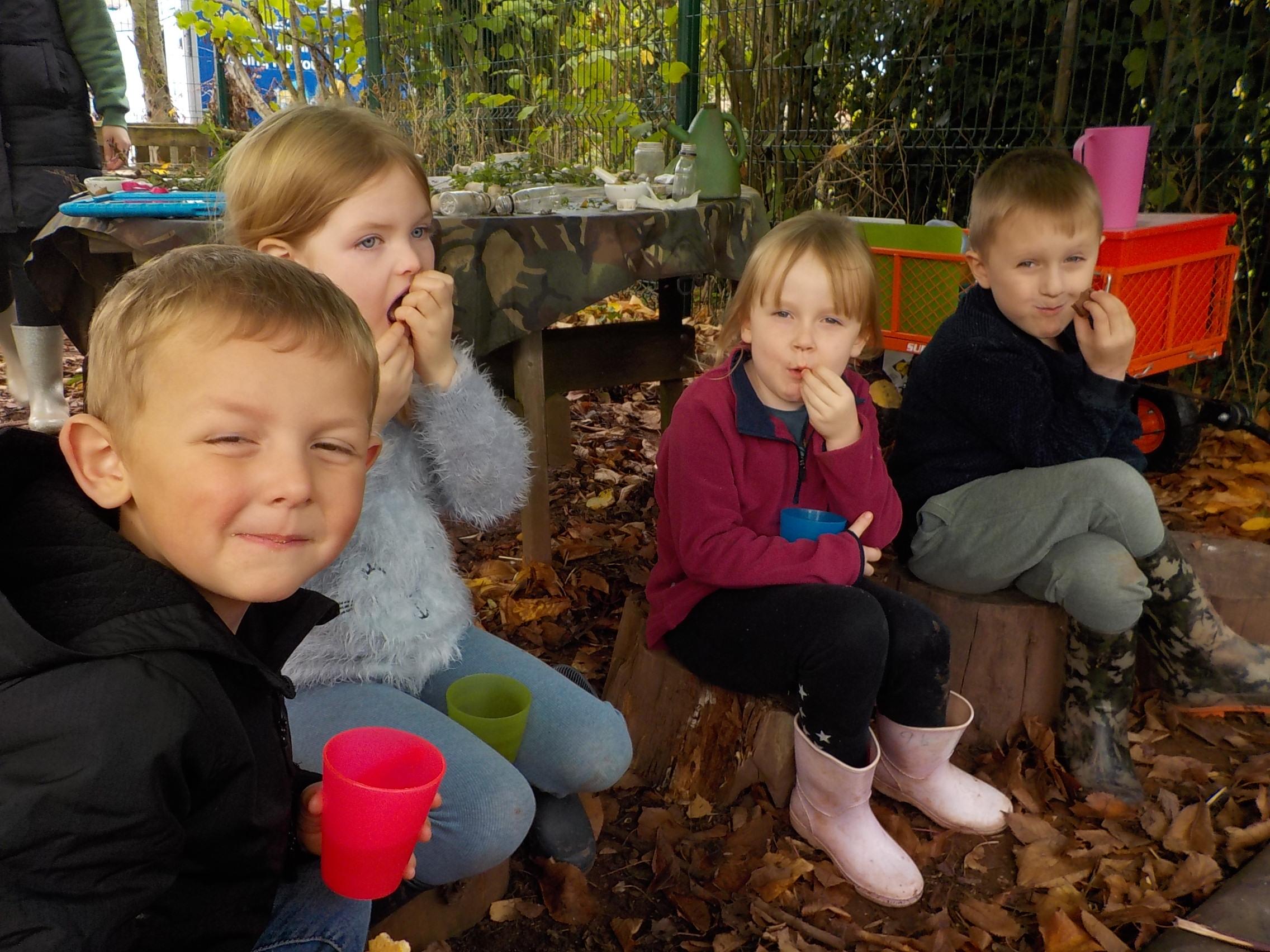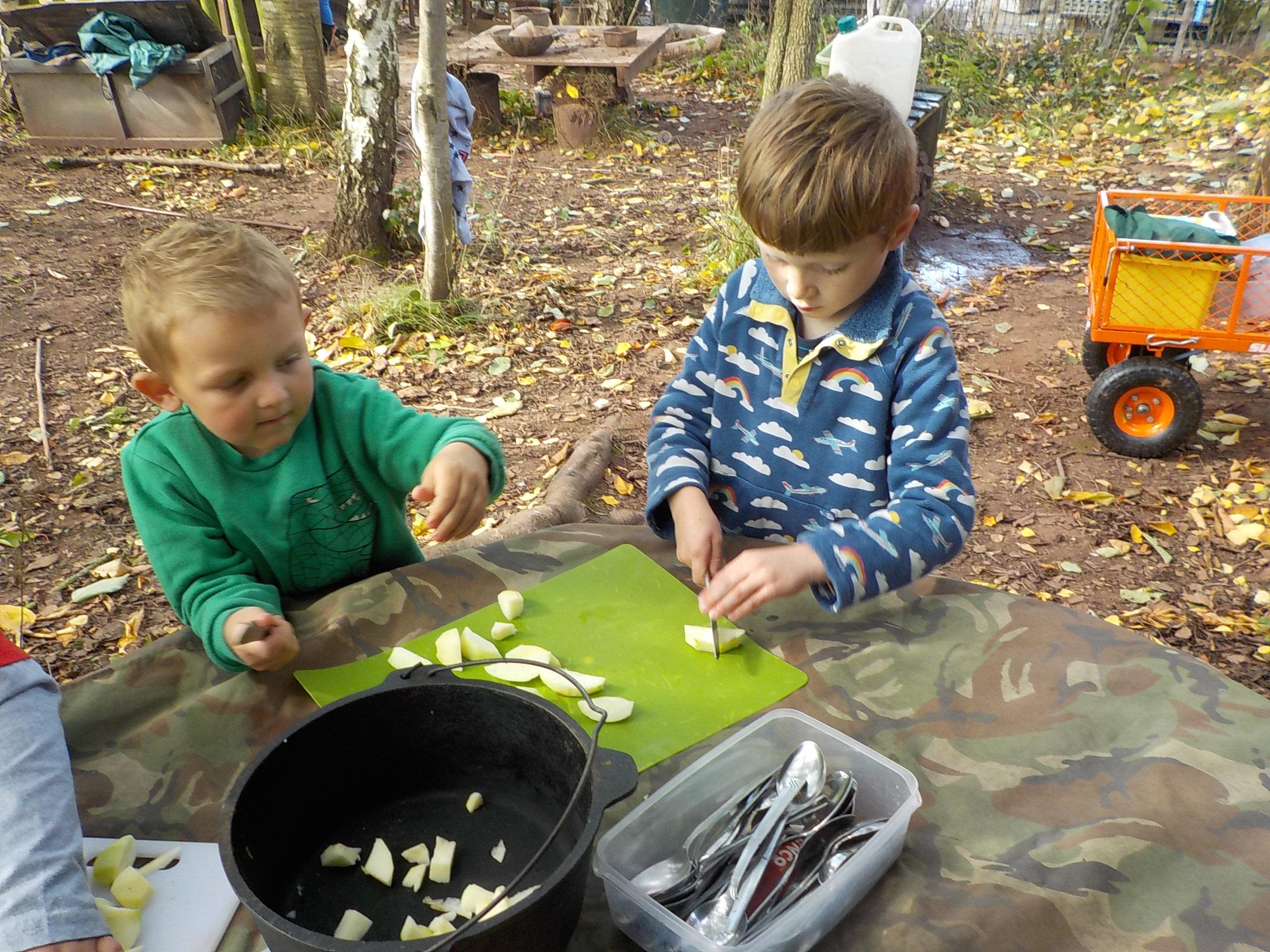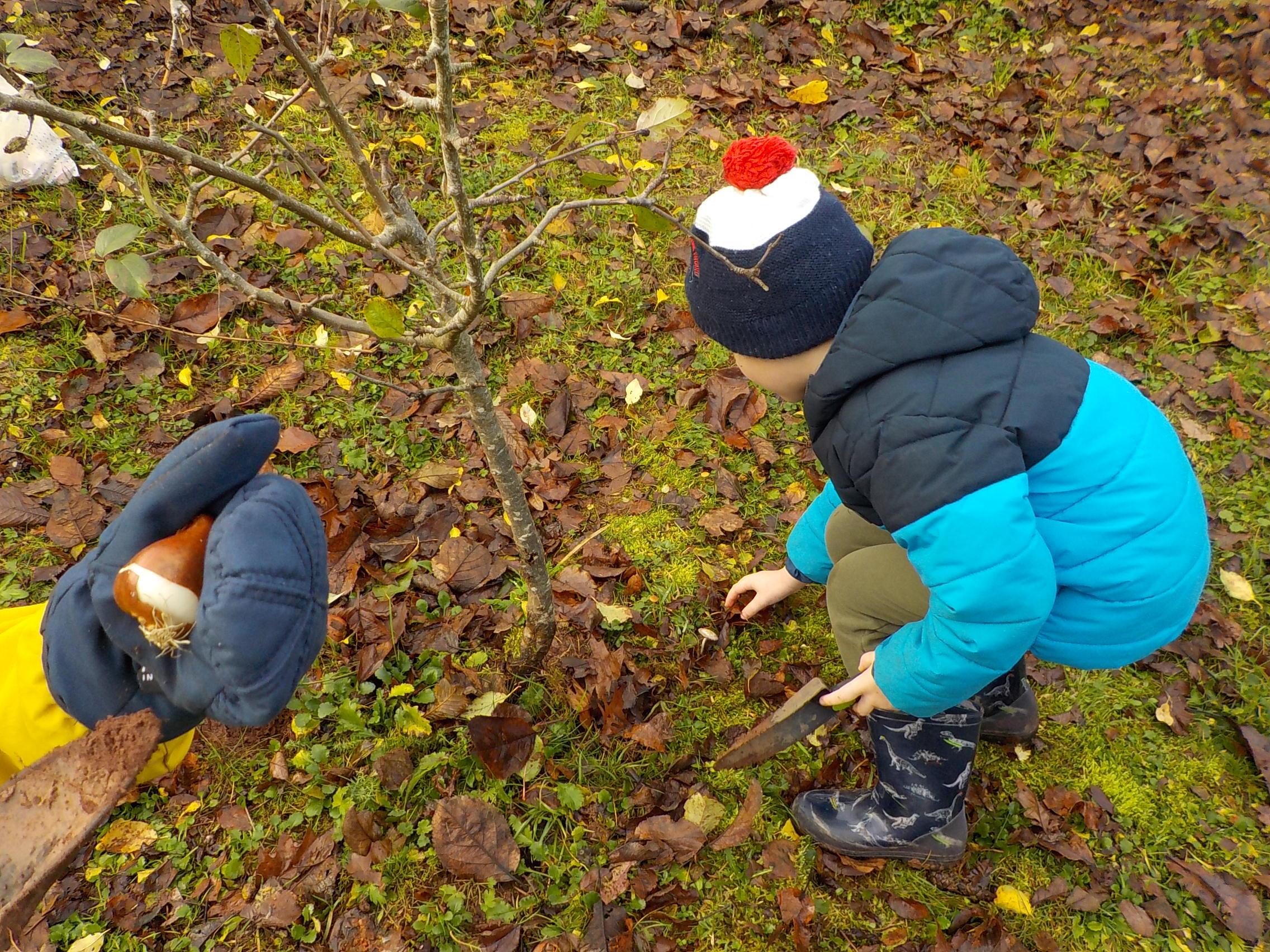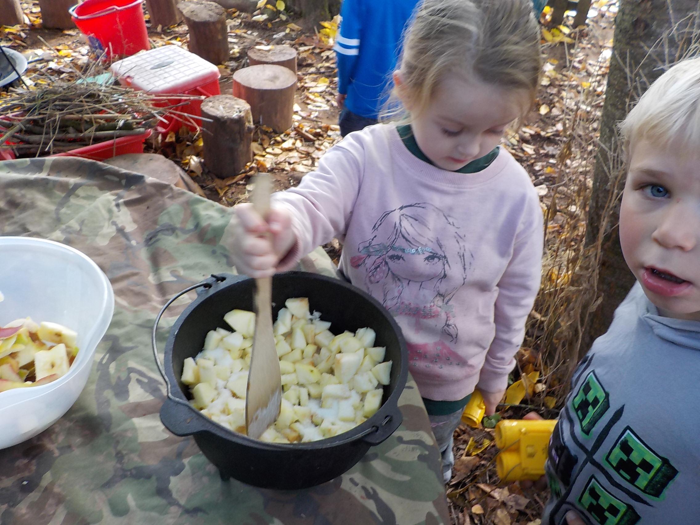 Apple crumble and hunting for leaves and minibeasts